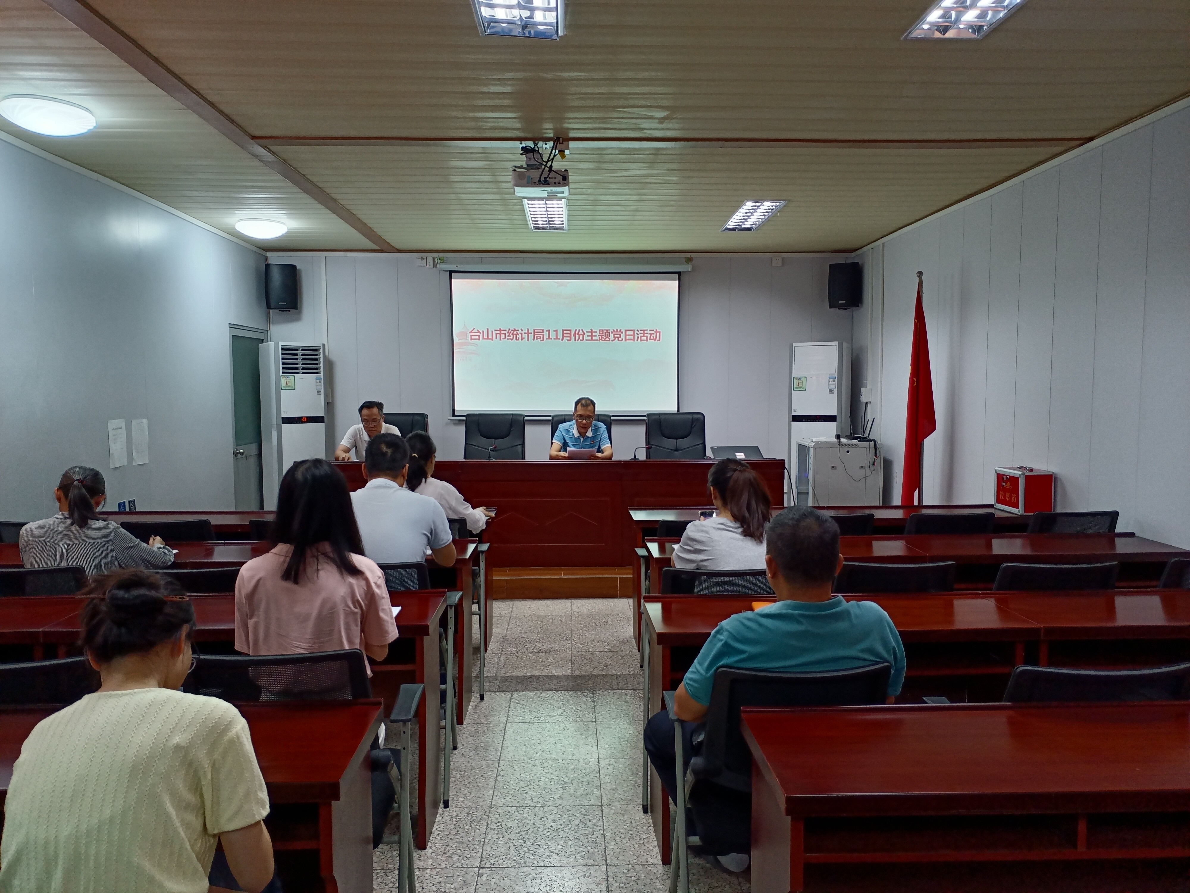 11月14日,臺(tái)山市統(tǒng)計(jì)局開展以“學(xué)習(xí)貫徹黨的二十大精神 高舉旗幟踔厲奮發(fā)跟黨走”為主題的黨日活動(dòng),局機(jī)關(guān)全體黨員干部參加了學(xué)習(xí)活動(dòng)。