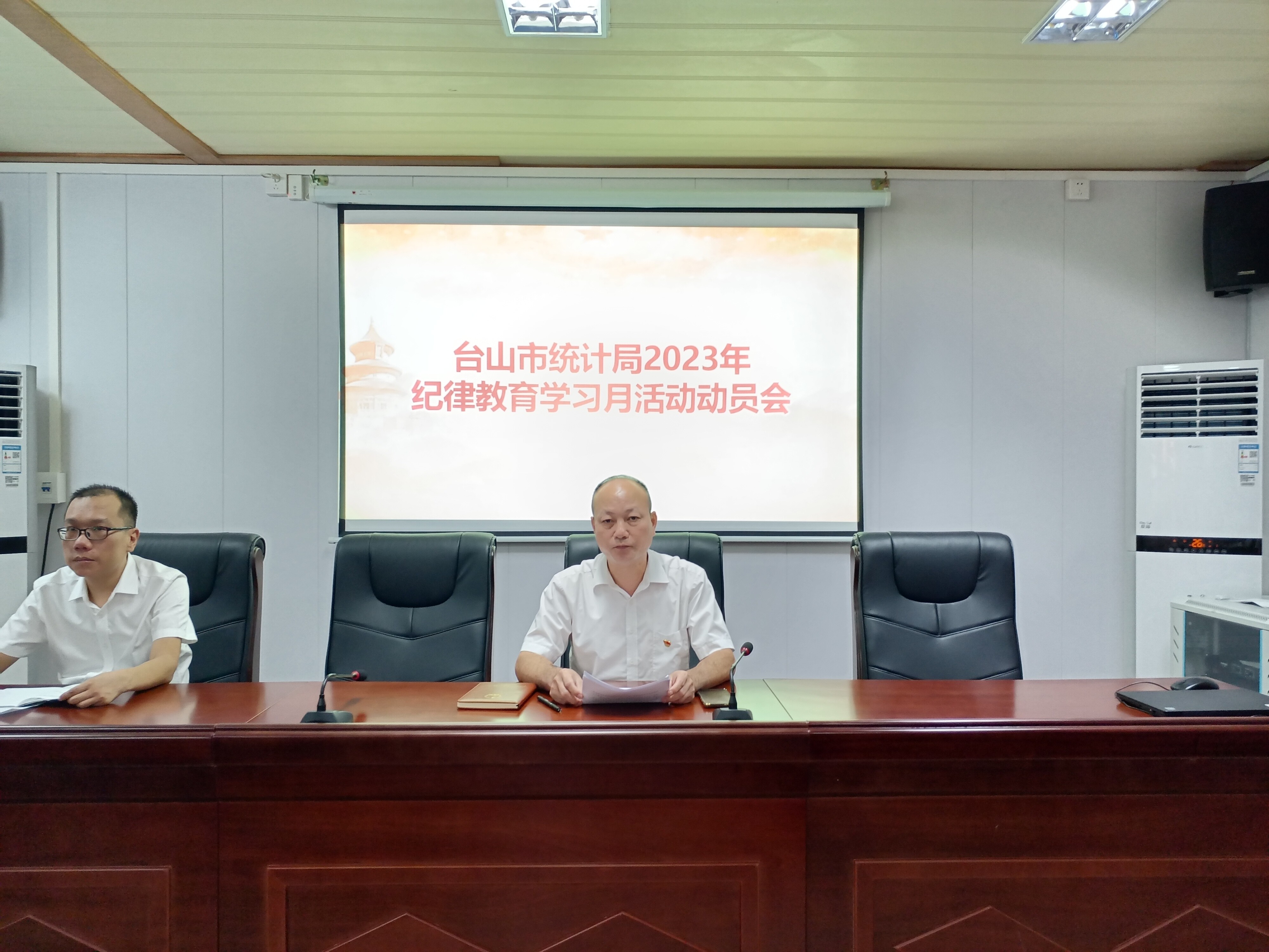 8月15日,市統計局召開紀律教育學習月活動動員會,傳達《中共臺山市委辦公室關于印發〈2023年全市開展紀律教育學習月活動的實施方案〉的通知》文件精神和我局活動方案要求,對我局今年開展紀律教育學習月活動進行動員部署。黨組書記、局長黃衛松作動員講話,全體黨員干部參加會議。