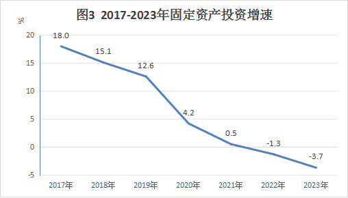 全年固定資產投資比上年下降3.7%。分投資主體看,國有投資增長11.9%;民間投資下降22.1%;港澳臺商投資下降53.4%,外商投資增長59.6%。分產業看,第一產業投資增長96.6%;第二產業投資增長5.7%,其中工業投資增長5.7%,制造業投資下降13.2%;第三產業投資下降14.3%。民間投資占固定資產投資的比重為43.9%?;A設施投資下降0.1%,水利、環境和公共設施管理投資增長48.9%。高技術產業投資下降4.5%,占固定資產投資的比重為3.1%。