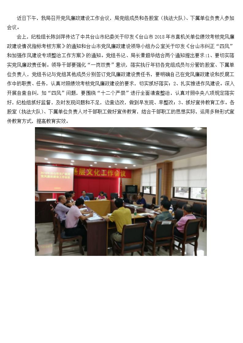 臺山市文化廣電新聞出版局召開黨風廉政建設工作會議