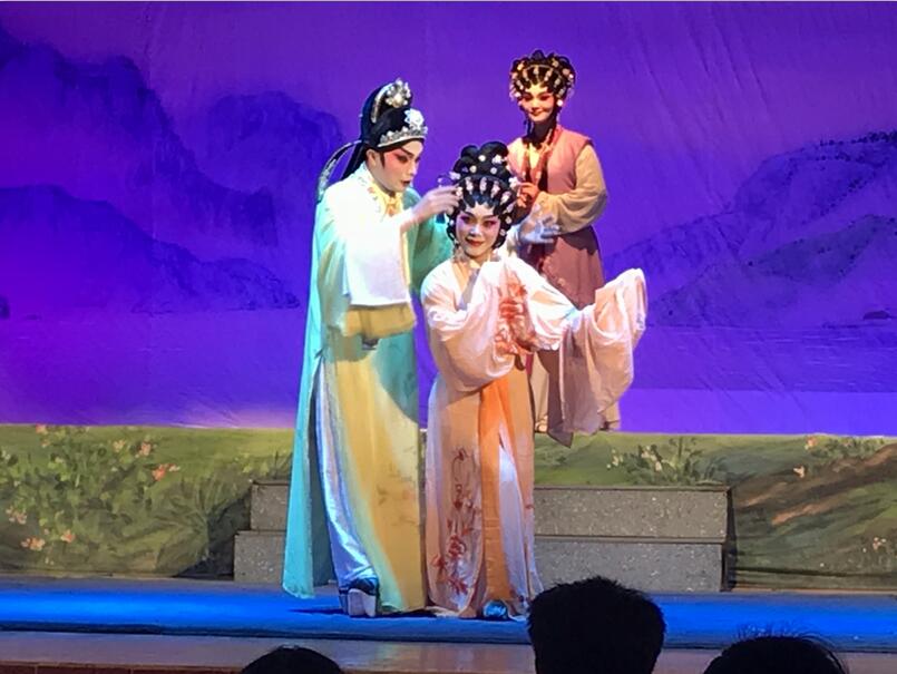 粵劇專場每天晚上7時30分準時開鑼,粵劇愛好者一早便來到現(xiàn)場霸定靚位。《漢文皇后》、《啞女告狀》、《荊釵奇緣》等經(jīng)典粵劇輪番上演。高雅的舞臺場景布置,演員精美的服飾、精細的妝容,美輪美奐的舞臺效果讓人賞欣悅目。演員們動作嫻熟、唱腔優(yōu)美、演繹自然流暢,觀眾們看得如癡如醉,紛紛拍手叫絕。婉轉曲折的故事情節(jié)引起現(xiàn)場觀眾的共鳴,許多年紀大的觀眾還跟著哼唱起來。