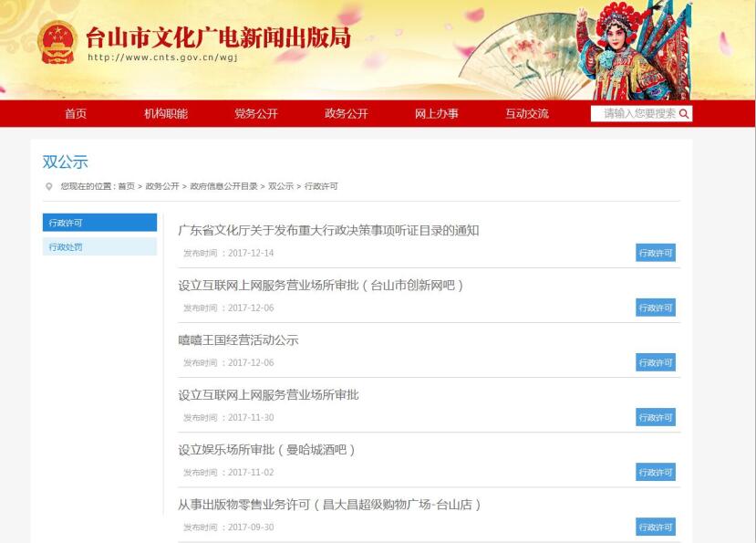 信息公開時限由2017年1月1日開始至2017年12月31日,相關數據主要源于對臺山文廣新局網站、微信、微博等各類信息統計。