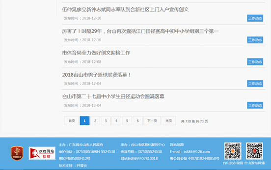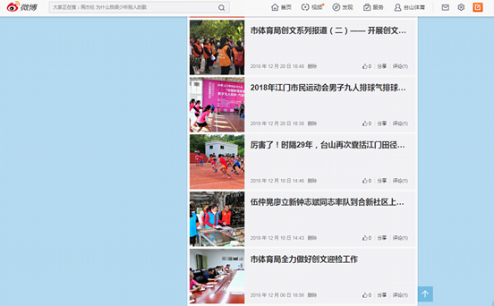(三)健全信息公開平臺。一是積極完善政府網站日常維護和更新工作。二是優化臺山體育微信公眾號和臺山體育官方微博,增加了賽事活動預告、賽事活動報道、體育工作動態和國家相關政策等廣大民眾所關注的體育信息板塊。三是信息發布工作扎實推進,及時把體育方面的重大政策、重點工作、重要活動、重大突發事件以及社會關心的熱點問題通報給廣大群眾。