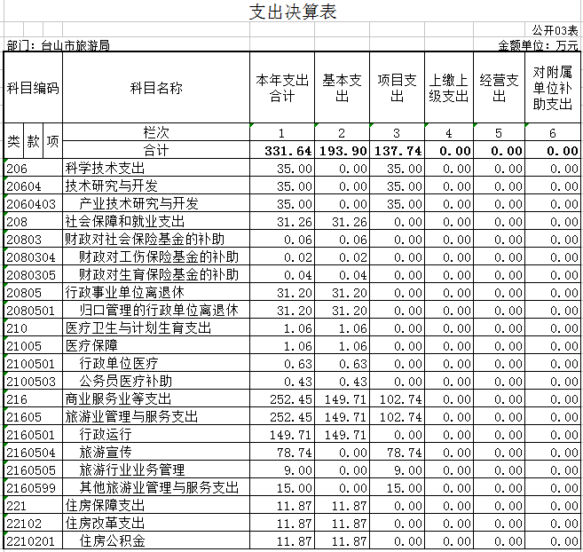 第三部分 臺山市旅游局2016年部門決算情況說明