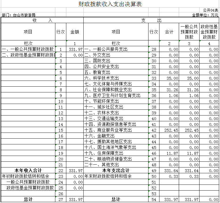 (二)2016年財政撥款支出331.64萬元,結余轉入事業基金0.33萬元。