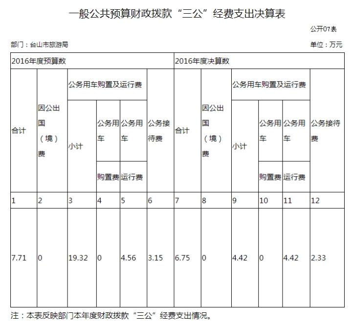 十二、“三公”經費:按照黨中央、國務院有關文件及部門預算管理有關規定,“三公”經費包括因公出國(境)費、公務用車購置及運行費和公務接待費。(1)因公出國(境)費,指單位工作人員公務出國(境)的住宿費、旅費、伙食補助費、雜費、培訓費等支出。(2)公務用車購置及運行費,指單位公務用車購置費及租用費、燃料費、維修費、過路過橋費、保險費、安全獎勵費用等支出。公務用車指用于履行公務的機動車輛,包括領導干部專車、一般公務用車和執法執勤用車。(3)公務接待費,指單位按規定開支的各類公務接待(含外賓接待)支出。