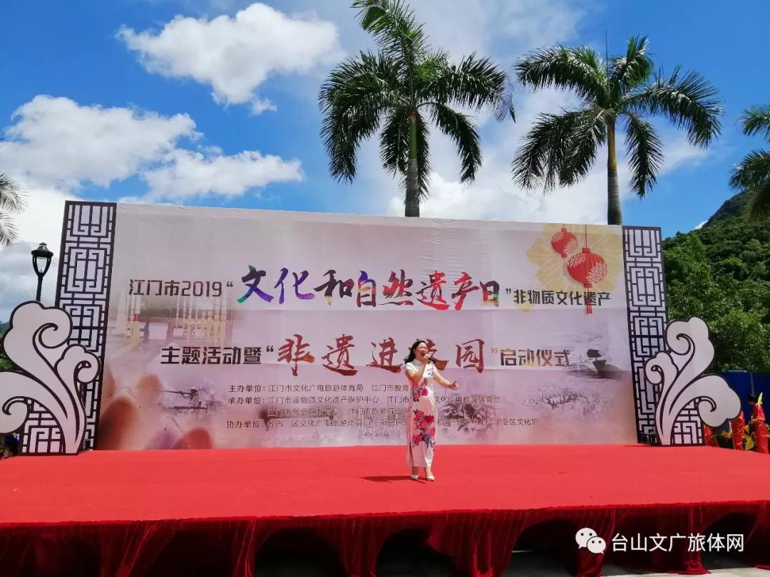 日前,由江門市文廣旅體局和江門市教育局主辦的江門2019年“文化和自然遺產日”非物質文化遺產宣傳展示主題活動暨“非遺進校園”正式在新會古兜溫泉度假村啟動。我市非遺項目“臺山民歌”獲邀在啟動儀式上展演,向現場觀眾展示了我市獨特的民間藝術風采。臺山市文化館“廣東音樂”項目獲授“江門市非物質文化遺產工作站”。