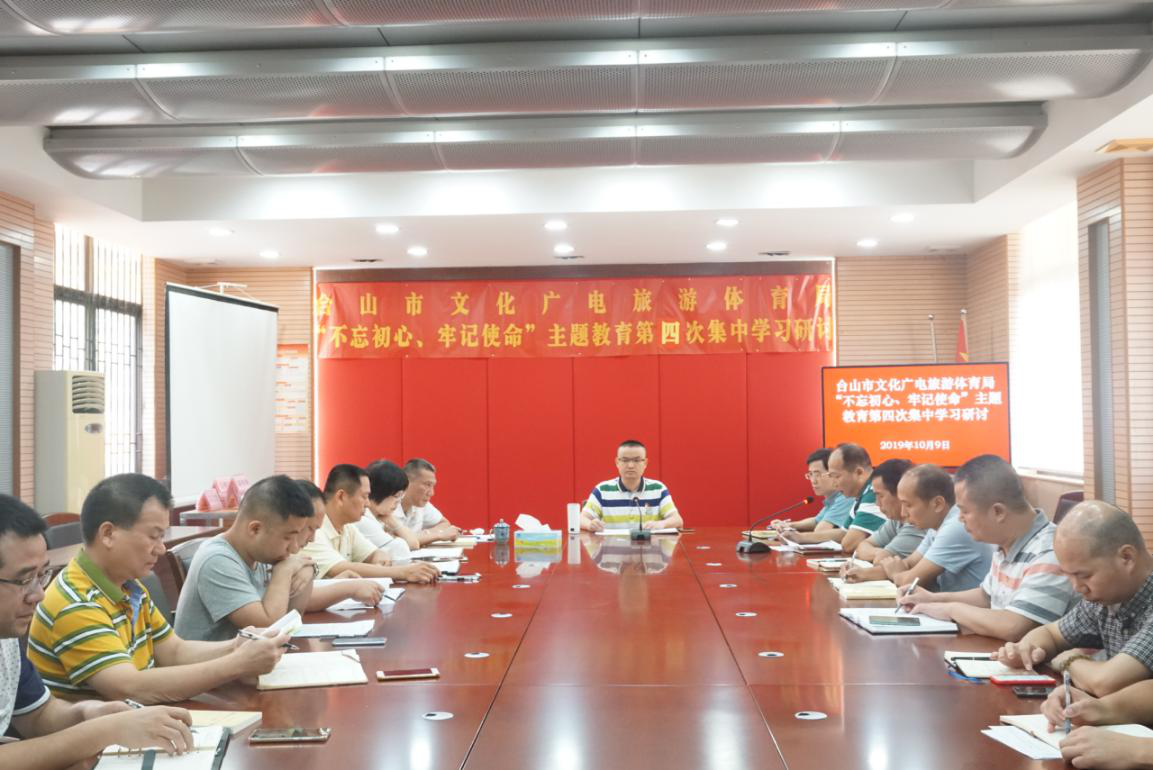 10月9日下午,市文化廣電旅游體育局召開“不忘初心、牢記使命”主題教育第四次集中學習研討會議,局黨組成員、各股(室)和下屬事業單位負責人參會。局黨組書記、局長雷克同志主持會議,局黨組成員、副局長趙永強同志圍繞《黨的十九大報告》《中國共產黨黨內重要法規匯編》《做到“兩個維護”》以及習近平總書記在中央和國家機關黨的建設工作會議上的講話等學習內容作主題發言,何建國股長、陳啟輝股長、市圖書館負責人吳偉龍等同志分別作交流發言。
