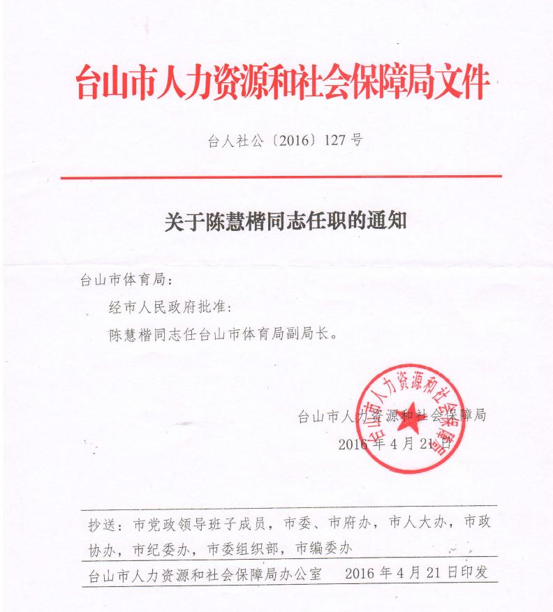 關于陳慧楷同志的任職通知
