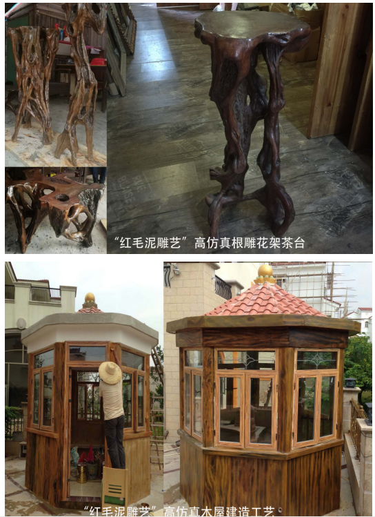 “紅毛泥雕藝”是臺山地區二十世紀初的文化藝術產物,由民間灰雕工藝結合西洋藝術演變而成,本土藝術風格濃郁,百年來采用傳統方法手工雕塑技藝制造,其工藝特點是堅韌耐風化,色彩鮮艷奪目,百看不厭,可采用粗獷或細膩手法塑造任何物體造型,是西洋雕塑藝術與本土文創藝術的結晶,用途非常廣闊,從傳統的建筑立雕、浮雕演變成現代的旅游文化大型的藝景觀裝飾新工藝,形成獨特的創意藝術的生態鏈……。
