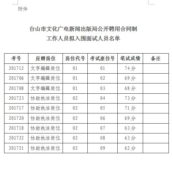 附件:臺山市文化廣電新聞出版局公開聘用合同制工作 人員擬入圍面試人員名單