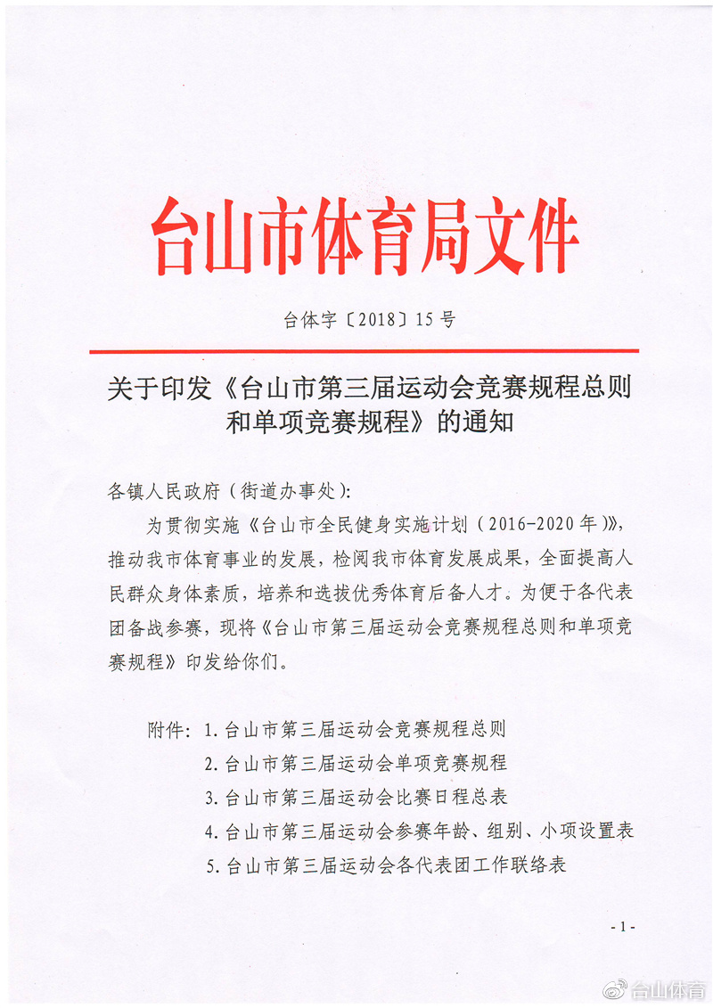 2018015-關于印發《臺山市第三屆運動會競賽規程總則和單項規程》的通知