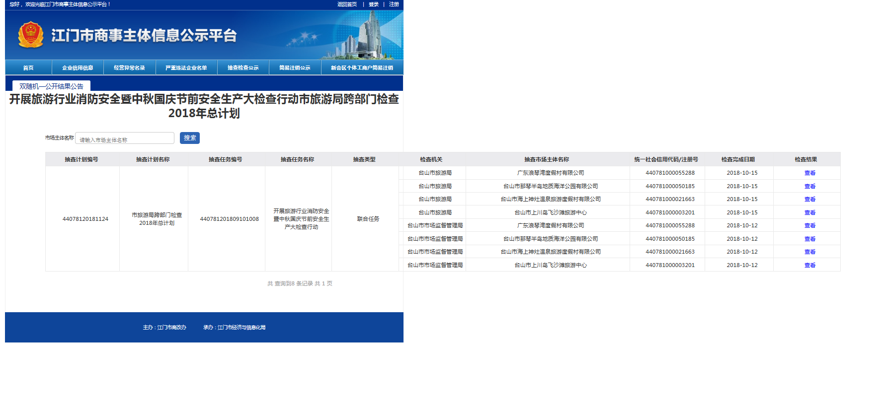 經檢查,均未發現上述被檢單位存在違法違規的問題。檢查結果可登錄“江門市商事主體信息公開平臺”查詢。