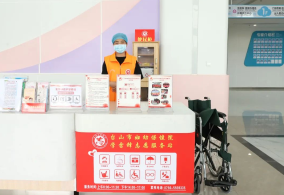 為了能給臺山市民提供更好、更便捷的就醫體驗,市內26家醫療衛生單位均設置學雷鋒志愿服務站,志愿者在就診大廳里為就診群眾提供必要的幫助,如耐心教導年齡較大的患者如何使用手機進行掛號、問診,主動幫助腿腳不方便的患者推輪椅等,以實際行動弘揚雷鋒精神,進一步推動醫療衛生單位的精神文明建設。志愿者為來院就診的視障人士及老年人等特殊人士提供信息無障礙服務,備有手寫板、輪椅、老花鏡、放大鏡等便民物品。同時,服務站內還配備愛心雨傘為患者遮陽擋雨;提供手機充電服務解決患者手機沒電的燃眉之急;配備免費飲用水、一次性水杯、針線包等便民服務,為每一個需要幫助的患者帶去溫暖和關懷。