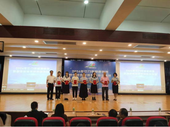 在健康教育職業技能競賽環節,臺山市代表隊隊員理論功底扎實、操作技能熟練、綜合素質全面,脫穎而出,充分展示我市健康科普專家風采和專業形象。最終,臺山市代表隊榮獲“2024年健康教育職業技能競賽暨市級選拔賽”團體一等獎和單項獎(知識競賽)一等獎。
