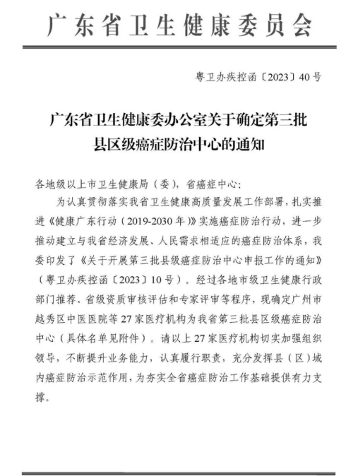 近日,廣東省衛生健康委員會發布《廣東省衛生健康委辦公室關于確定第三批縣區級癌癥防治中心的通知》,臺山市人民醫院獲批“江門市臺山市癌癥防治中心”。這不僅是對醫院腫瘤防治專業實力的認可,也標志著醫院在癌癥防治領域邁上了新臺階。