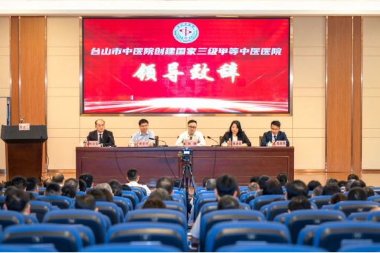 在表態發言環節,市中醫院黨委書記代表全體職工,堅定有力地許下莊嚴承諾,展現了臺中醫人攻堅克難、追求卓越的精神,宣示創建“三甲”中醫醫院的堅定決心。