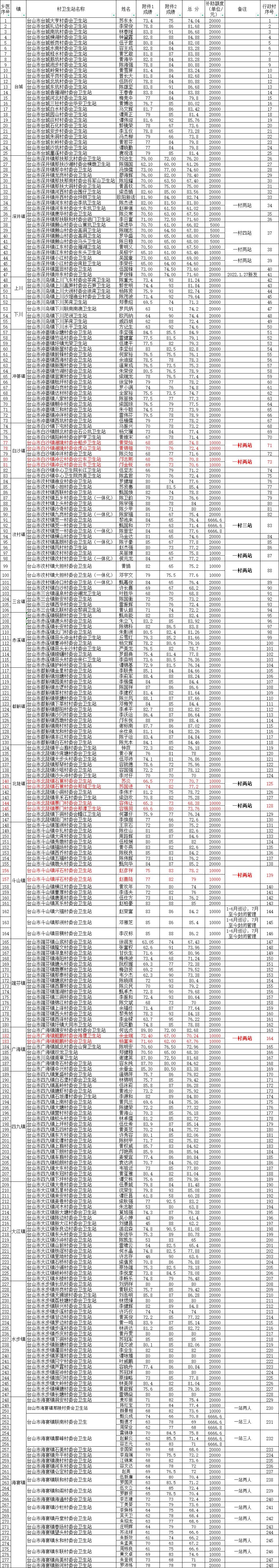 附件:臺山市2022年村衛生站鄉村醫生績效考核和補助發放表