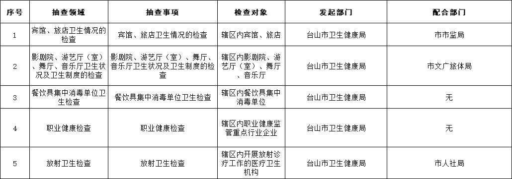 備注:根據廣東省市場監督管理局等40部門關于印發《廣東省市場監管領域部門聯合抽查事項清單(第一版)》,并結合江門實際情況填報。