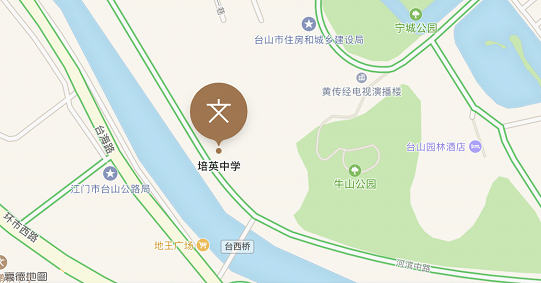 臺山市培英職業技術學校(臺城和平路(舊校門)/臺城河濱路(新校門))。
