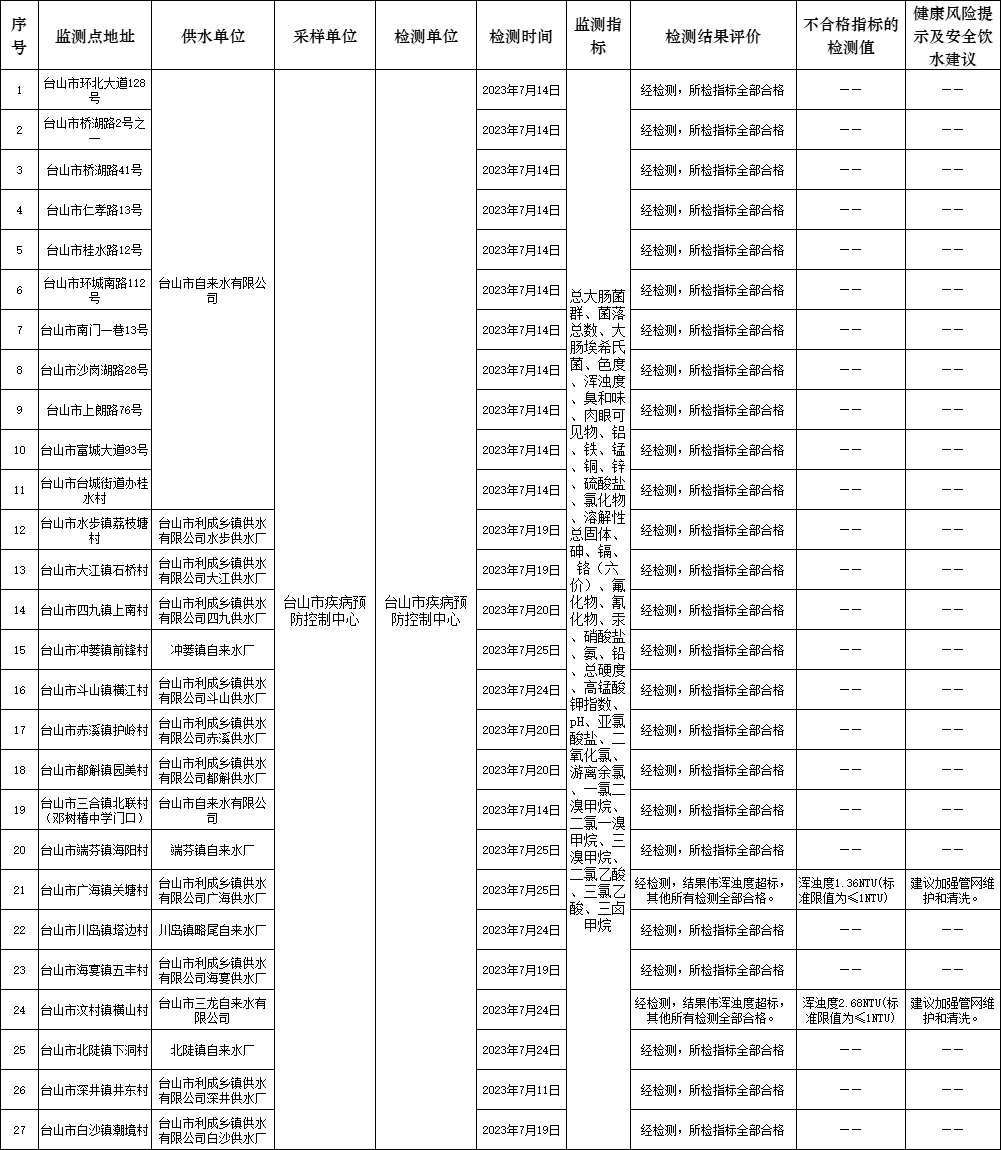 注:(1)水樣采集保存、運輸及檢測方法:按照現行《生活飲用水標準檢驗方法》(GB/T5750-2006)的要求進行。
