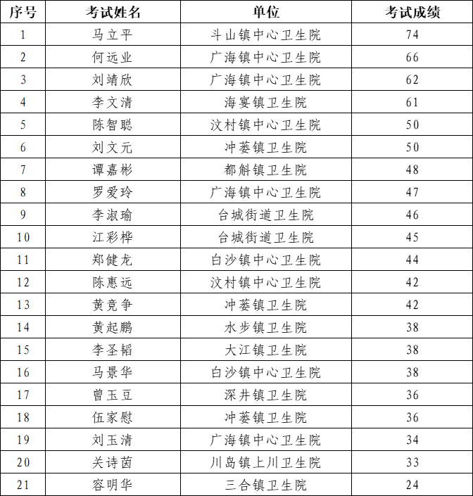 參與本次綜合理論考試的考生共21人,成績合格(分數達60分及以上)4人,不合格17人,合格率為19.05%(4/21),各考生具體成績詳見附件。