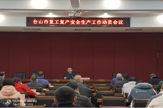 為全面貫徹落實(shí)江門(mén)市安委辦召開(kāi)的全市復(fù)工復(fù)產(chǎn)安全生產(chǎn)工作動(dòng)員會(huì)精神,結(jié)合我市當(dāng)前復(fù)工復(fù)產(chǎn)工作實(shí)際,全面加強(qiáng)復(fù)工復(fù)產(chǎn)安全指導(dǎo)保障,確保全市節(jié)后安全形勢(shì)持續(xù)穩(wěn)定,1月30日上午,市安委辦組織召開(kāi)全市復(fù)工復(fù)產(chǎn)安全生產(chǎn)工作動(dòng)員會(huì),各鎮(zhèn)(街)、市發(fā)展和改革局、市教育局、市科工商務(wù)局、市公安局、市自然資源局、江門(mén)市生態(tài)環(huán)境局臺(tái)山分局、市住房和城鄉(xiāng)建設(shè)局、市交通運(yùn)輸局、市水利局、市農(nóng)業(yè)農(nóng)村局、市文化廣電旅游體育局、市衛(wèi)生健康局、市市場(chǎng)監(jiān)督管理局、市城市管理和綜合執(zhí)法局等單位分管負(fù)責(zé)同志參加了會(huì)議。市安委辦主任、市應(yīng)急管理局黨委書(shū)記、局長(zhǎng)黃灼熾出席會(huì)議并作具體工作部署。