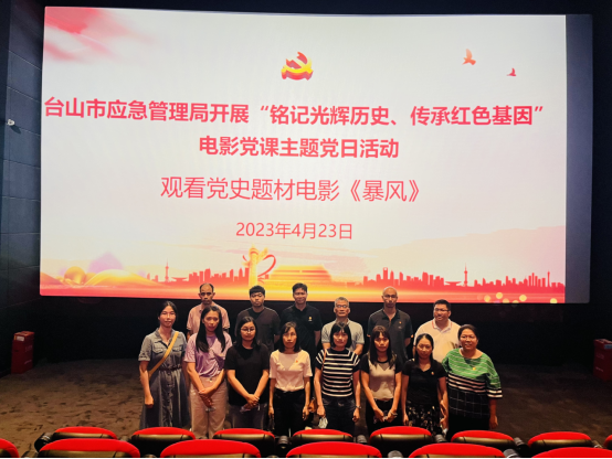 4月23日,市應急管理局組織干部職工集體觀看優秀粵產紅色諜戰電影《暴風》,影片以20世紀30年代中央紅色交通線上的汕頭秘密交通站為故事背景,講述共產黨隱蔽戰線的革命先烈用鮮血和生命奪取勝利的英雄故事。