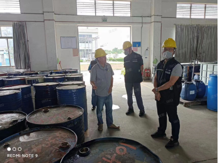 圖為:5月1日檢查組一行對(duì)臺(tái)山市鑫華化工有限公司進(jìn)行現(xiàn)場(chǎng)督查