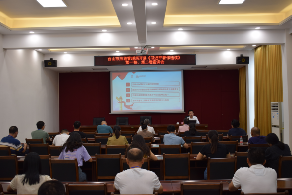 為認真貫徹落實習近平新時代中國特色社會主義思想,學深悟透《習近平著作選讀》第一卷、第二卷,深化落實省委“1310”具體部署,以新安全格局保障臺山新發展格局,8月15日,市應急管理局邀請市委宣講團成員在局6樓會議室開展學習貫徹《習近平著作選讀》第一卷、第二卷宣講會。市應急管理局全體機關黨員干部職工共計30余人參加此次宣講會。
