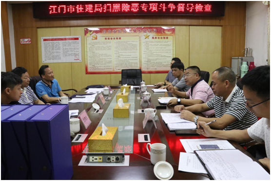為深入推進掃黑除惡專項斗爭,強化責(zé)任落實,7月9日下午,江門市住建局副調(diào)研員林俊斌帶隊到臺山市住建局開展住建領(lǐng)域掃黑除惡專項斗爭督導(dǎo)檢查,采取召開座談會的方式進行。臺山市住建局黨組書記、局長劉文,伍朝斌總工程師、副局長方浩瀚、副局長余富前等領(lǐng)導(dǎo)以及掃黑除惡辦相關(guān)人員參加了督導(dǎo)座談會。