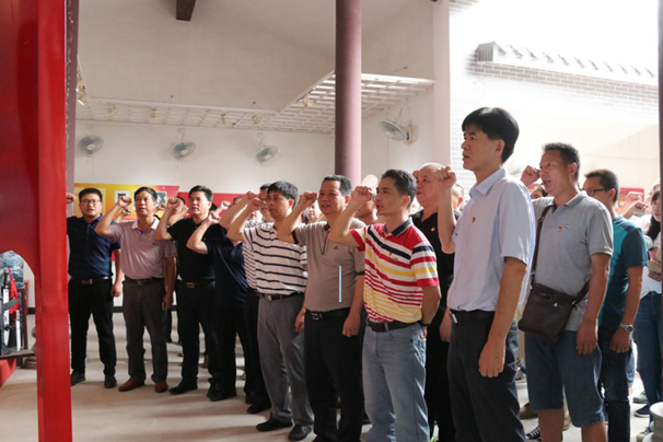 鶴山市宅梧鎮靖村余氏宗祠是廣東人民抗日解放軍司令部舊址,在講解員的指引下,大家聆聽了人民解放軍救國圖存的英雄事跡。一張張圖片、一件件歷史文物,都仿佛在向大家訴說解放軍那段英勇斗爭的光輝歷史。參觀過后,全體黨員莊嚴舉起右手,握緊拳頭,重溫入黨誓詞,回憶自己入黨宣誓時的莊嚴承諾和奮斗決心。