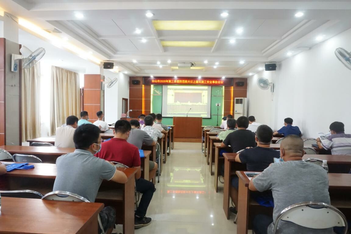 9月1日下午,市住建局召開臺山市2020年第三季度防范較大以上建筑施工安全事故會議暨2020年質量月動員大會。會議通過現場會議及視頻直播相結合的方式召開,主會場設在市住建局,分會場設在質安站,其他人員通過視頻直播參會。市住建局黨組成員、副局長譚人任,建管股股長吳育龍,質安站站長楊錦湖,以及建管中心分管領導、質安站副職以上領導、全體監督員和我市各房地產開發商、施工單位、監理單位的項目負責人、項目總監等約180多人參加會議。