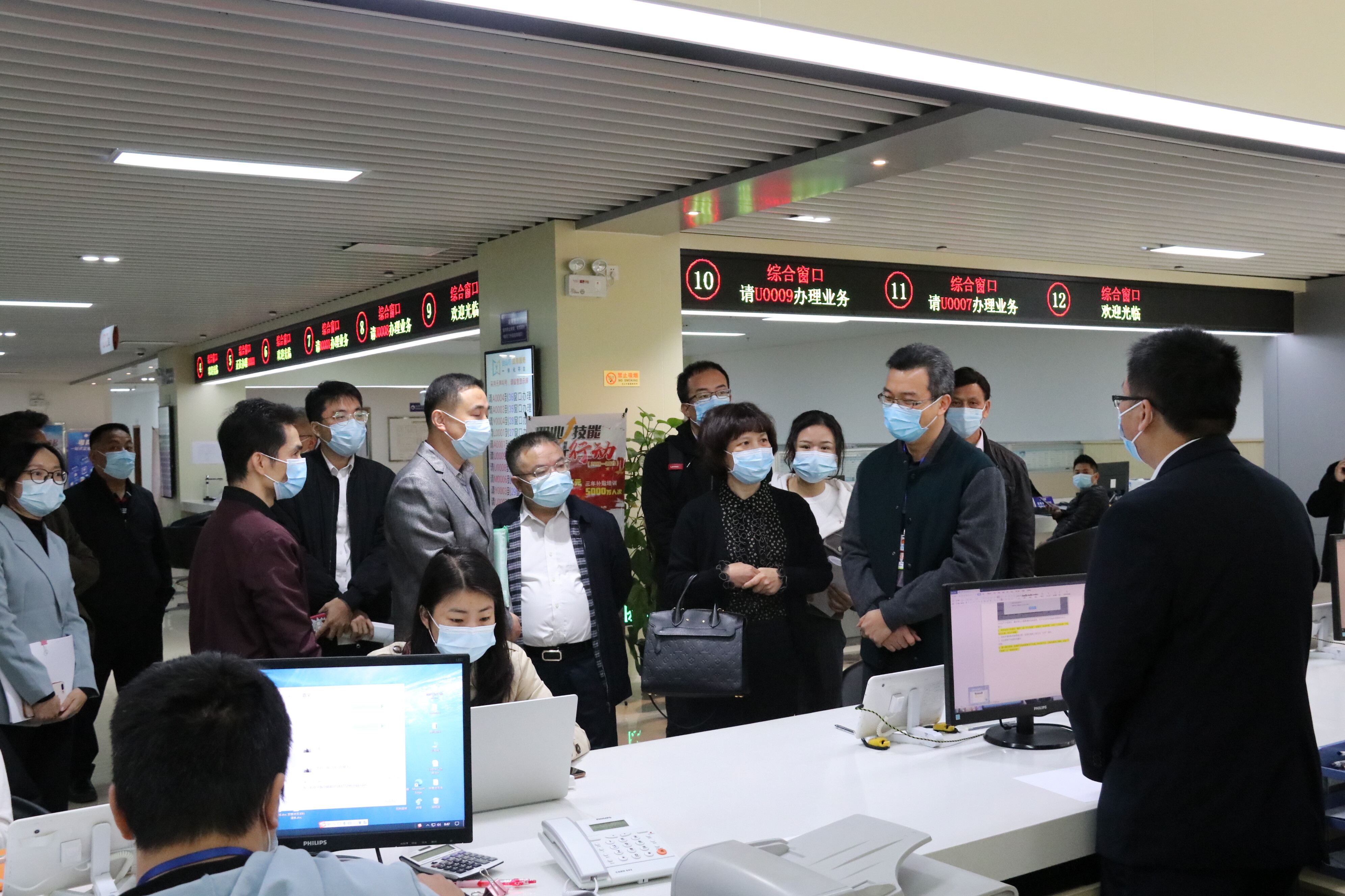 調研組首先來到市行政服務中心三樓投資建設項目審批服務窗口,了解窗口人員設置、業務受理、工建平臺使用情況等,特別對供水、供電等公用服務進駐情況進行了詳細詢問。