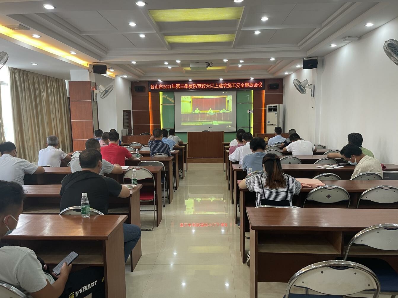 6月8日下午,市住建局召開臺山市2021年第三季度防范較大以上建筑施工安全事故會議暨安全生產月動員大會。會議通過現場會議及視頻直播相結合的方式召開。市住建局黨組成員、副局長譚人任,建筑工程監管股股長吳育龍,質安站站長王宇南,以及質安站、檢測站和建管中心副職以上領導和我市各房地產開發商、施工單位、監理單位的項目負責人、項目總監等共約100人參加會議。