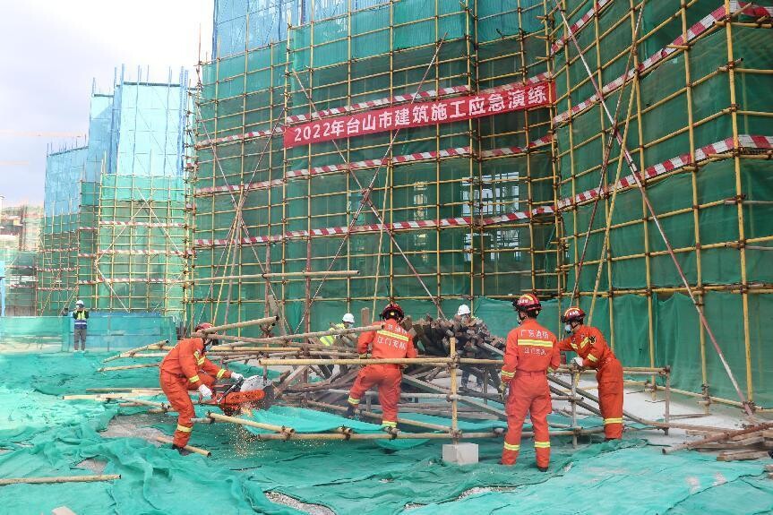 為貫徹落實上級關于強化應急救援能力建設的工作要求,進一步提升我市建筑施工突發應急事件的處理能力,2022年3月10日下午,市住房和城鄉建設局聯合市應急管理局、市消防救援大隊、臺城街道辦、市中醫院等部門單位,在保利和公館項目施工現場舉辦2022年臺山市建筑施工應急救援演練。臺山市保利房地產開發公司、中國建筑第四工程局有限公司等企業一同參與此次演練。