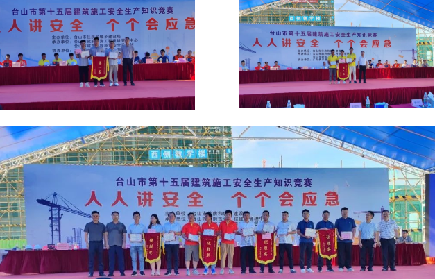作為2023年臺山市“建筑施工安全生產(chǎn)月”系列活動的重要組成部分,今年的建筑施工安全生產(chǎn)知識競賽以“人人講安全、個(gè)個(gè)會應(yīng)急”為主題,共有七支代表隊(duì)伍參加。知識競賽采取必答題、自選問答題、搶答題三個(gè)環(huán)節(jié)進(jìn)行,各參賽選手答題踴躍、熱情高漲,通過全方位考查安全生產(chǎn)基本知識推動安全理念入腦入心。同時(shí)舉行觀眾互動問答有獎(jiǎng)環(huán)節(jié),現(xiàn)場人員積極參與,氣氛熱烈,整場比賽精彩紛呈。最終中天建設(shè)集團(tuán)有限公司富居禧公館工程項(xiàng)目部代表隊(duì)獲得第一名。