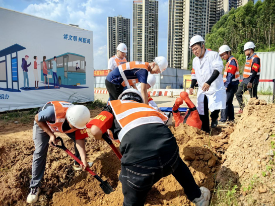 7月28日下午,由市住建局主辦、市質(zhì)安站協(xié)辦、廣東省臺(tái)山市鴻堅(jiān)建筑工程有限公司承辦的2023年臺(tái)山市建筑施工三防應(yīng)急救援演練活動(dòng)在碧桂園鉆石花園項(xiàng)目現(xiàn)場舉行。市住建局黨組成員、副局長譚人任,市質(zhì)安站站長王宇南以及全體質(zhì)安監(jiān)管人員、現(xiàn)場施工人員共50多人參加此次演練。