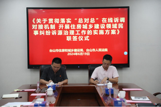最后,雙方達(dá)成一致意見(jiàn),共同簽署了《關(guān)于貫徹落實(shí)“總對(duì)總”在線訴調(diào)對(duì)接機(jī)制 開(kāi)展住房城鄉(xiāng)建設(shè)領(lǐng)域民事糾紛訴源治理工作的實(shí)施方案》,現(xiàn)場(chǎng)建立了住建領(lǐng)域糾紛“總對(duì)總”在線訴調(diào)對(duì)接工作群,方便及時(shí)溝通和信息共享,搭建溝通橋梁。