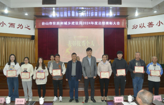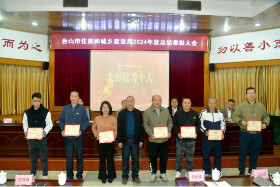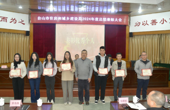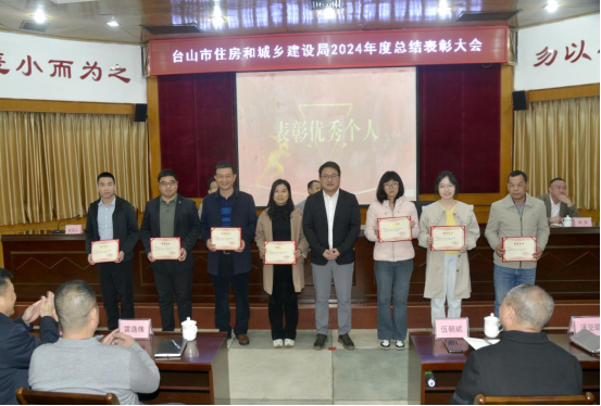 1月22日,市住建局召開2024年度工作總結表彰大會,回顧總結2024年工作,研究部署2025年任務,表彰住建系統優秀個人集體,激勵全體干部職工團結一心、務實肯干,為臺山住建事業的持續發展注入強大動力,共同書寫臺山邁向高質量發展的嶄新輝煌篇章。局黨組書記、局長譚庚銳作講話。局黨組成員、副局長譚人任主持會議。