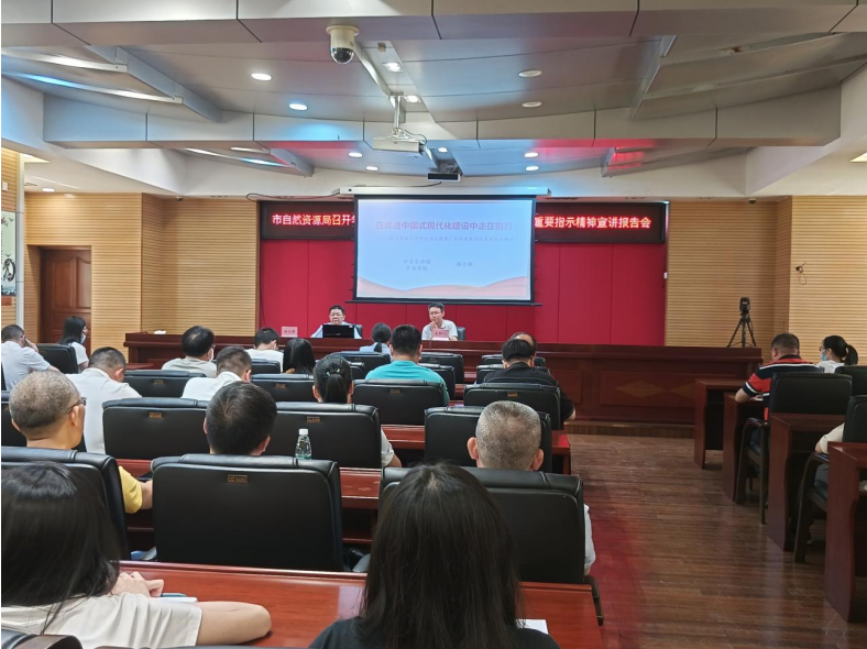 會議強調,學習宣傳貫徹習近平總書記視察廣東重要講話、重要指示精神,是當前和今后一個時期的一項重大政治任務。各黨支部書記要充分發揮帶頭作用,帶領支部黨員干部結合報告會內容,深入學習領會習近平總書記視察廣東重要講話、重要指示的豐富內涵和實踐要求,切實用以統一思想、統一意志、統一行動。全體黨員干部要扛起職責使命,深刻領會總書記對廣東作出的新定位,緊緊圍繞我市高質量發展、建設富強綠美臺山的工作要求,以更為艱辛的探索、更加艱苦的努力,推動國土空間格局協調優化、做好自然資源要素保障工作、牢牢守好資源安全底線,持續提升資源治理能力,不折不扣把總書記視察廣東的重要講話、重要指示精神落到實處,結出碩果,為我市實施“百縣千鎮萬村高質量發展工程”走在前列貢獻自然資源的力量。