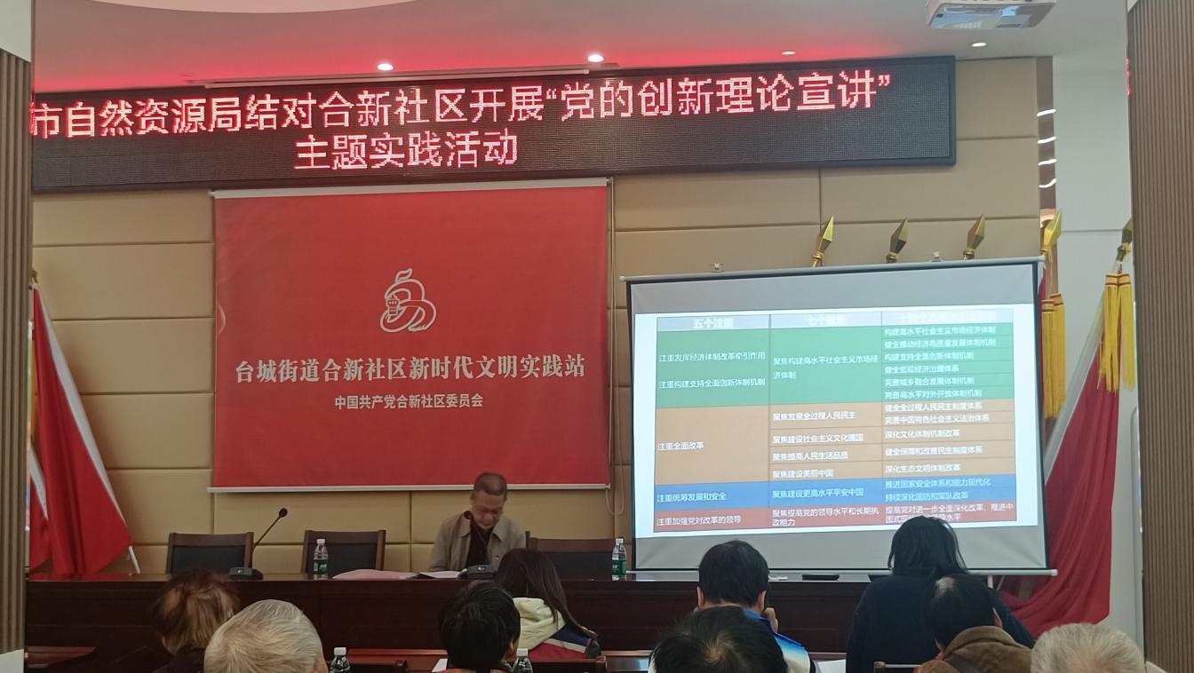 為充分發揮退休黨員干部優勢,推動黨的創新理論“深入尋常百姓家”,12月20日上午,市自然資源局深入合新社區開展“黨的創新理論宣講”主題實踐活動,邀請市“銀齡宣講隊”成員、我局退休黨員黃明輝以“‘進一步全面深化改革 為中國式現代化注入新動能’——學習貫徹黨的二十屆三中全會精神”進行宣講。