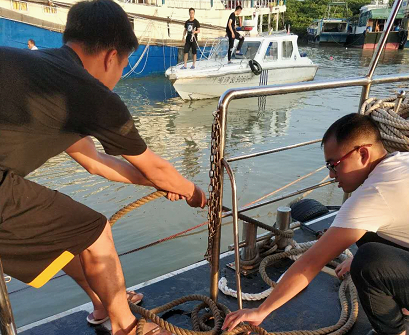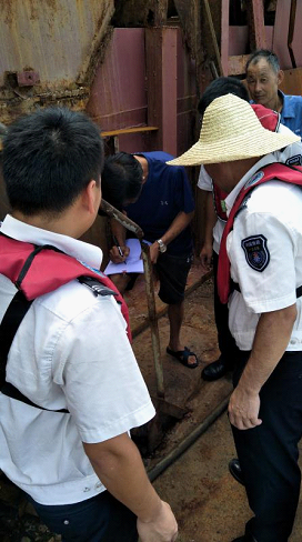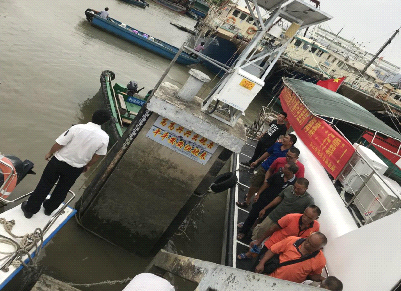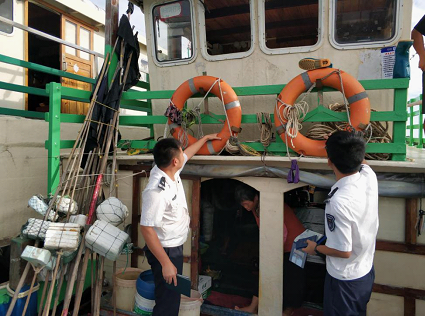 (漁政人員上船檢查檢查漁船受損及安全設備配備情況)