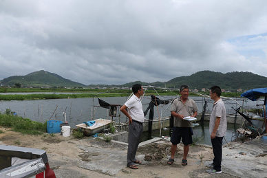 (江門、臺山漁業(yè)部門技術人員向都斛、海宴鎮(zhèn)養(yǎng)殖戶