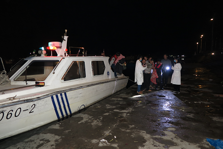 今年1月16日17時55分,臺山市海洋與漁業局接報:在上川烏豬島附近海域有一艘粵陽東漁16108船,船上有一船員在作業時手部不慎受傷,急需救援。接報后,我局迅速派出川島中隊和中國海監9060船執法人員駕駛快艇趕赴事發海域,并提前聯系上川醫院派出醫護人員在沙堤漁港等候。18時38分,我局救援人員到達事發海域,迅速將受傷船員轉移到執法船上,19時07分順利將受傷船員送回沙堤漁港,并安全轉移至救護車救治。