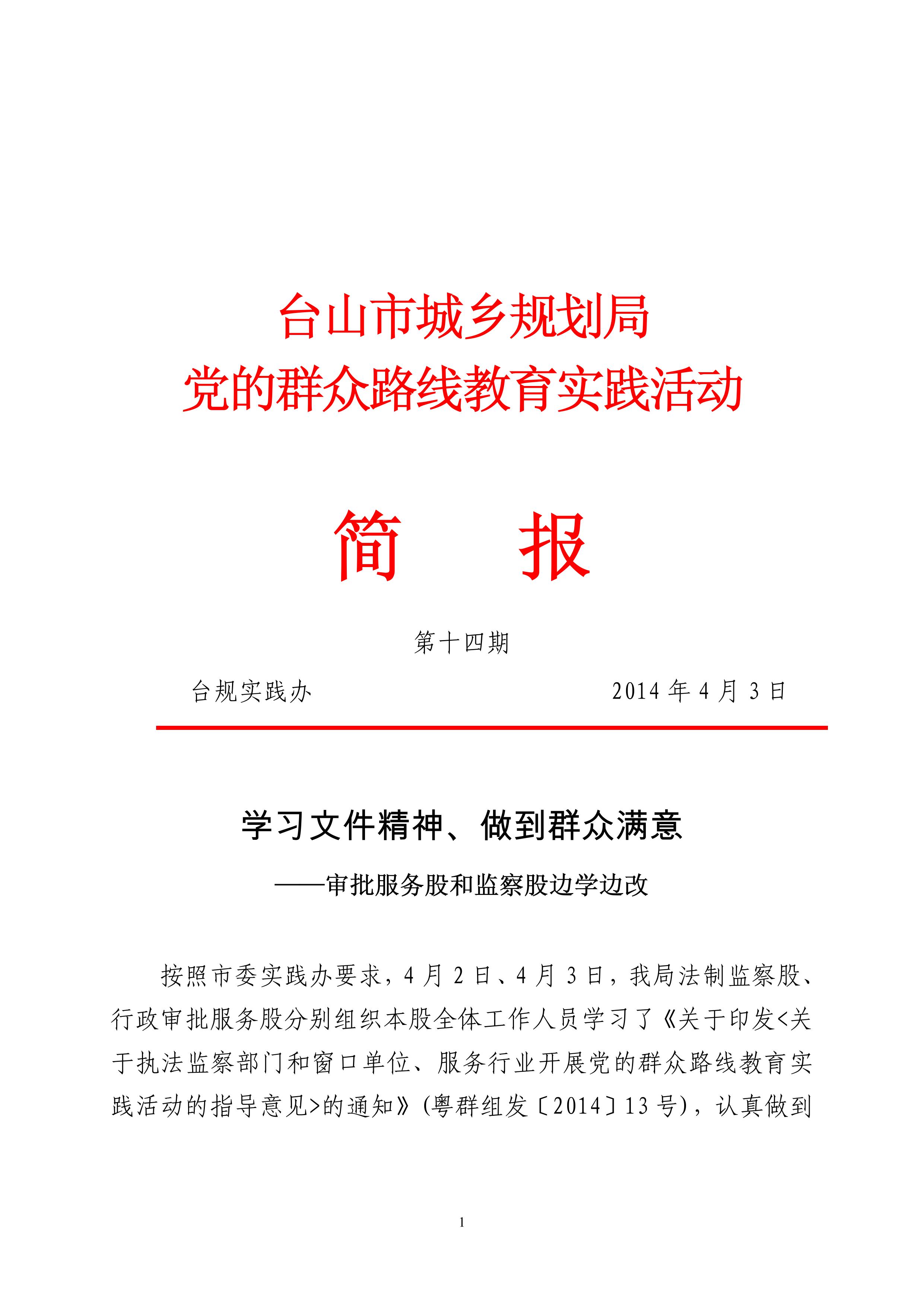 學習文件精神、做到群眾滿意(臺規實踐辦第14期)