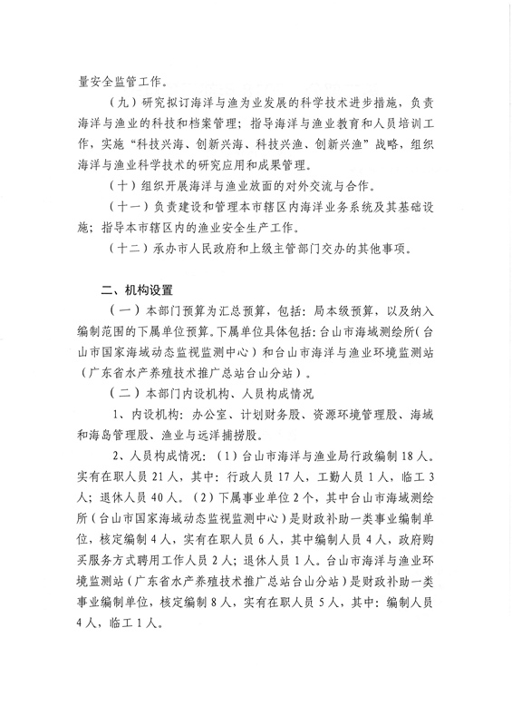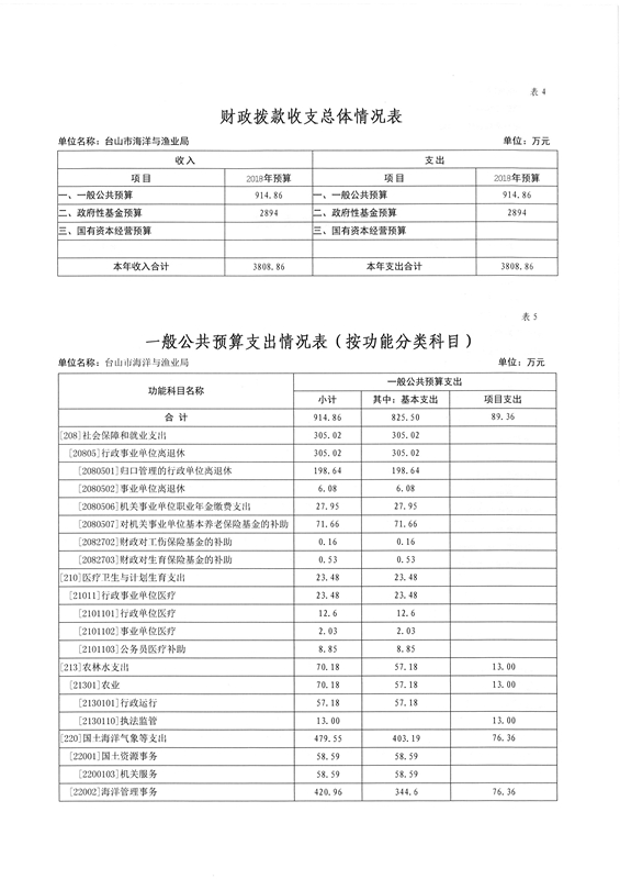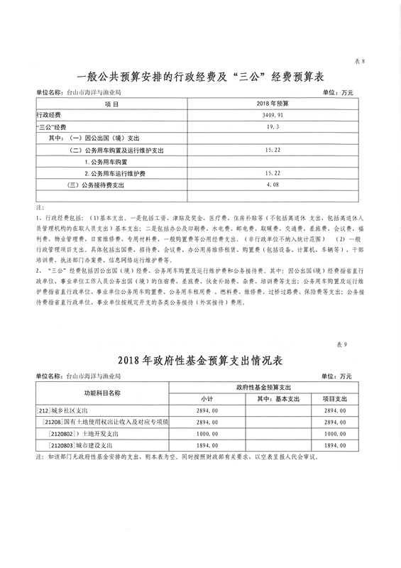 2018年臺山市海洋與漁業局部門預算公開(補充) --點擊可查看