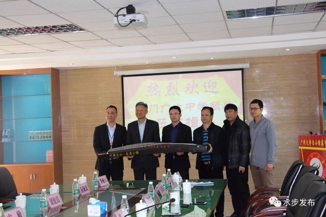 交流會上,先進行了開琴授琴儀式,羅海華代表鎮委鎮政府贈送澳門廣大中學古箏一臺,寄望兩地在國樂文化等領域有更多交流合作。廣州大學臺山附屬中學校長馬紹強介紹了學校的辦學特色和經驗。該校是在整合原水步中學和廣大中學的教育資源后,在工業新城興建的一所初級中學。學校自2016年掛牌成立以來,在市委市政府支持和廣州大學、廣大附中合作幫助下,先后成立了國防特色班,建立了與廣大附中“名校長工作室”、“名師工作室”的合作關系,初步形成了國防、國學、國樂“三國”教育辦學特色。當前,學校正結合水步鎮打造“善孝小鎮”的行動計劃,組織開展以傳承好家風的校園文化主題教育。