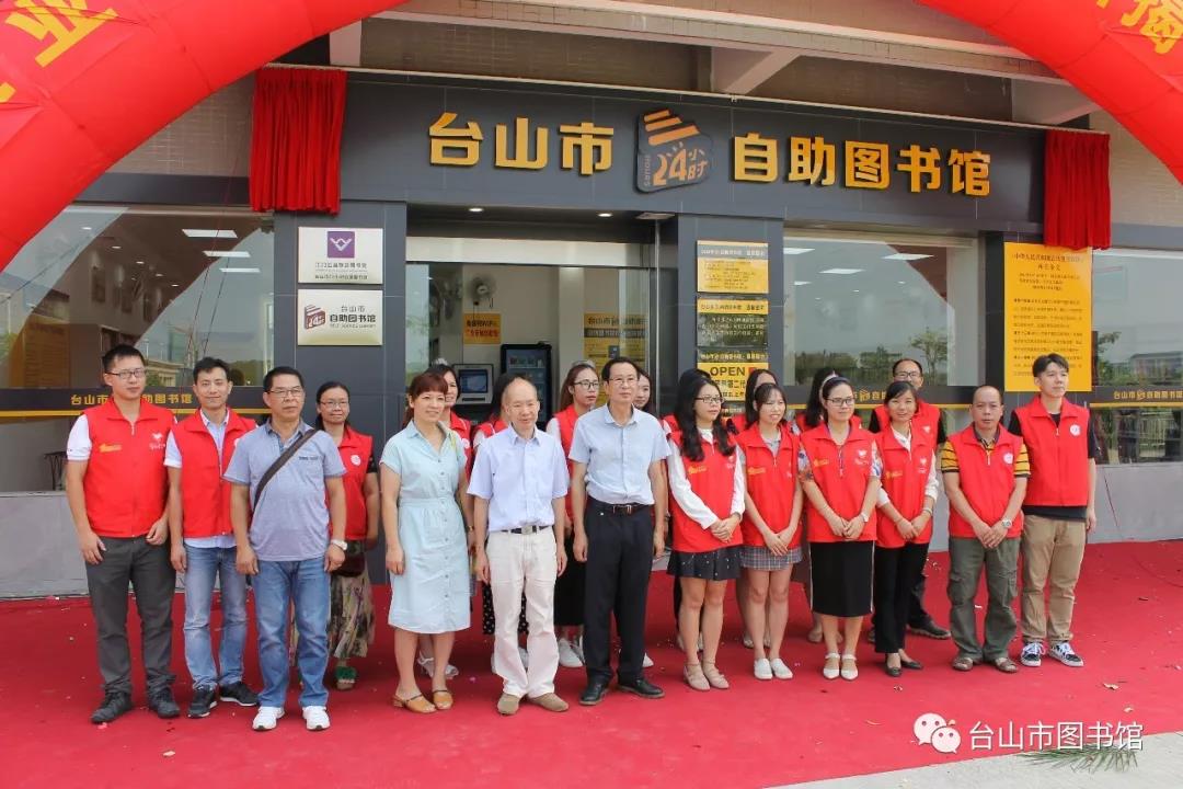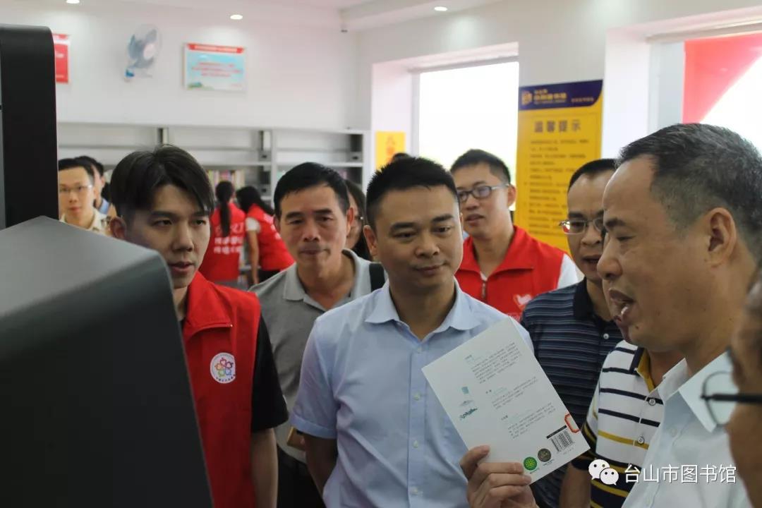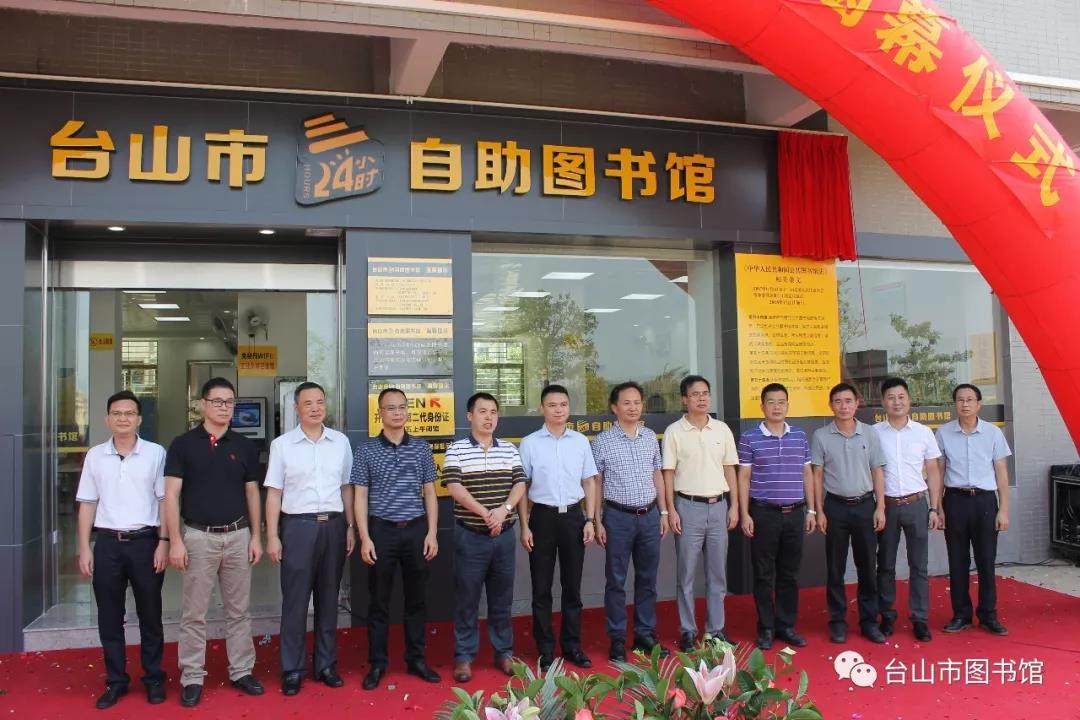 中共臺山市委常委、宣傳部長羅海華,江門市文廣新局副局長柳超球及相關領導為臺山市新建的24小時自助圖書館進行揭幕!