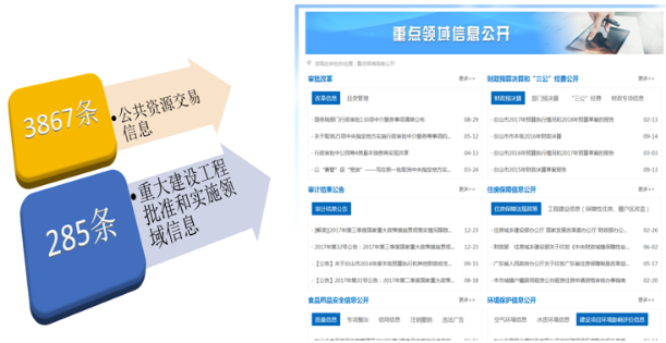 (七)做好重大建設工程批準和實施領域以及公共資源交易領域信息公開工作。按照“誰批準、誰公開,誰實施、誰公開,誰制作、誰公開”的原則,我市明確重大建設工程批準和實施領域、公共資源交易領域信息公開的工作主體,各權責單位按照工作環節和權責分別公開有關信息,努力實行政府行政決策、實施的全程透明化。明確公開渠道,借助政府網站第一平臺作用,發揮“重點領域信息公開專欄”的作用,全面向社會公布涵蓋教育、扶貧、救助、安全生產、住房保障、質量監管等公共資源配置領域的各類信息。同時,借助微信公眾號、微博等進行發布,拓寬政府信息公開渠道。2017年,我市共公布重大建設工程批準和實施領域信息285條,主要涉及項目批準服務信息和批準結果、征收土地信息等內容;公布公共資源交易信息3867條,主要涉及住房保障、國有土地使用權出讓和礦業權出讓、工程交易、產權交易和政府采購、農業農村公共資源配置等內容。